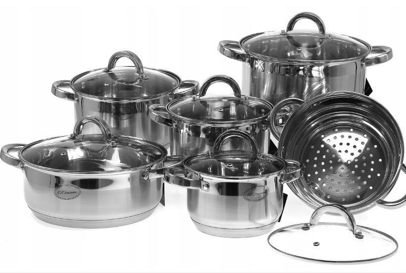 Ручки з нержавіючої сталі кріпляться до корпусу каструлі з допомогою заклепок. Набір каструль з міцної високоякісної нержавіючої сталі. Спеціальне 7-шарове теплове дно оптимально проводить тепло. Включає в себе універсальну парову варильну вставку для каструлі розміром 20 см, 18 см, 16 див. Зібране тепло дозволяє зберігати теплу їжу після приготування. Кришки із загартованого скла з випуском пари. Супер гладка поверхня з декоративними атласними елементами запобігає накопичення частинок їжі та жиру, полегшуючи очищення. Економія енергії за рахунок швидкого досягнення бажаної температури приготування. Може використовуватися в різних типах плит: газові, керамічних, електричних, галогенних і індукційних. Можливість миття в посудомийній машині. Приготування їжі в невеликій кількості води і смаження у невеликій кількості жиру зводить до мінімуму втрату вітамінів, мінералів і смаку, що дозволяє готувати здорову їжу